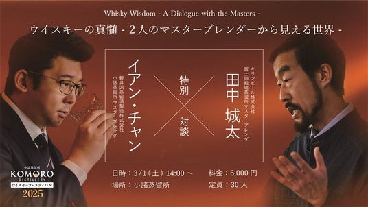 キリンビール株式会社 富士御殿場蒸溜所の田中城太氏と小諸蒸留所のイアン・チャンが登壇します。 富士御殿場蒸溜所のウイスキーや、小諸蒸留所のニューメイク(熟成前原酒)、ニューボーン(熟成3年未満の原酒)などの試飲を交えながら、ウイスキーの奥深い世界について語り合います。