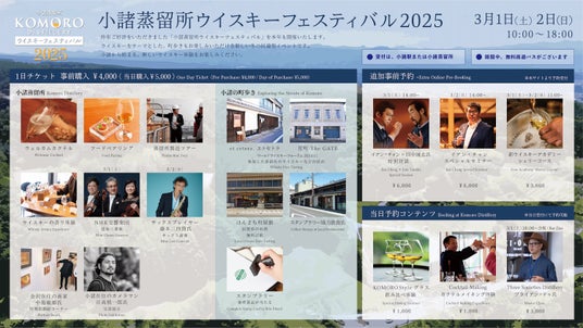2025年3月1日(土)・2日(日)の2日間、「小諸蒸留所ウイスキーフェスティバル2025」を開催します。小諸蒸留所だけではなく、小諸市内の特設会場や街歩きを楽しむことができる、新しいスタイルの回遊型フェスティバルです。
