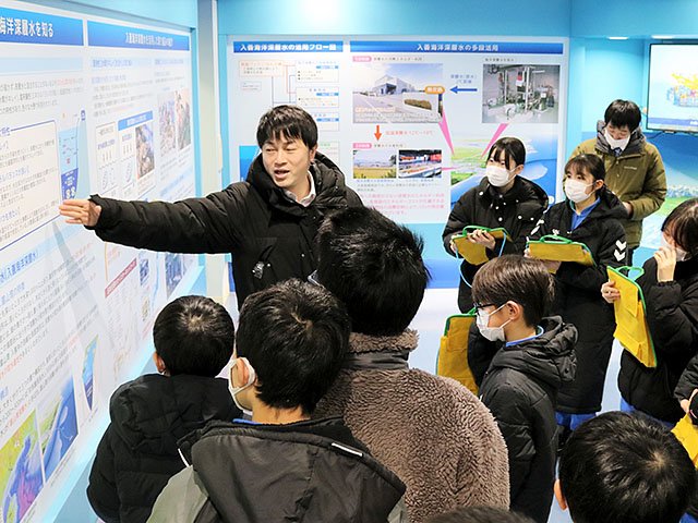 入善町桃李、ひばり野両小学校の6年生は29日、町内で取水している海洋深層水の活用関連施設を訪れ、地域資源を生かした産業に理解を深めた。