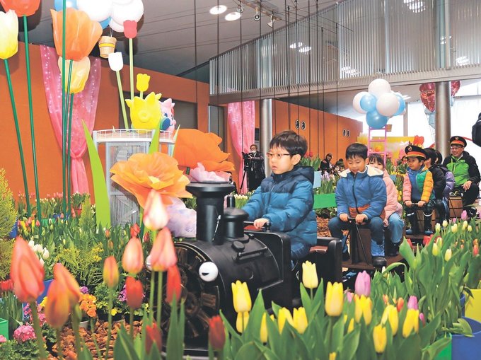 30日の開会式で夏野修市長は「より良い春になるように皆さんと共に願っていきたい」とあいさつ。同市鹿島の南部認定こども園の年長児28人らが加わり、テープカットした。園児たちはミニSLも楽しんだ。