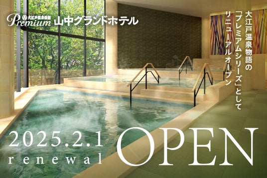 大江戸温泉物語ホテルズ&リゾーツ株式会社(本社:東京都中央区)が運営する、「大江戸温泉物語 Premium 山中グランドホテル」(以下、Premium 山中グランドホテル)が2025年2月1日(土)リニューアルオープンいたします。