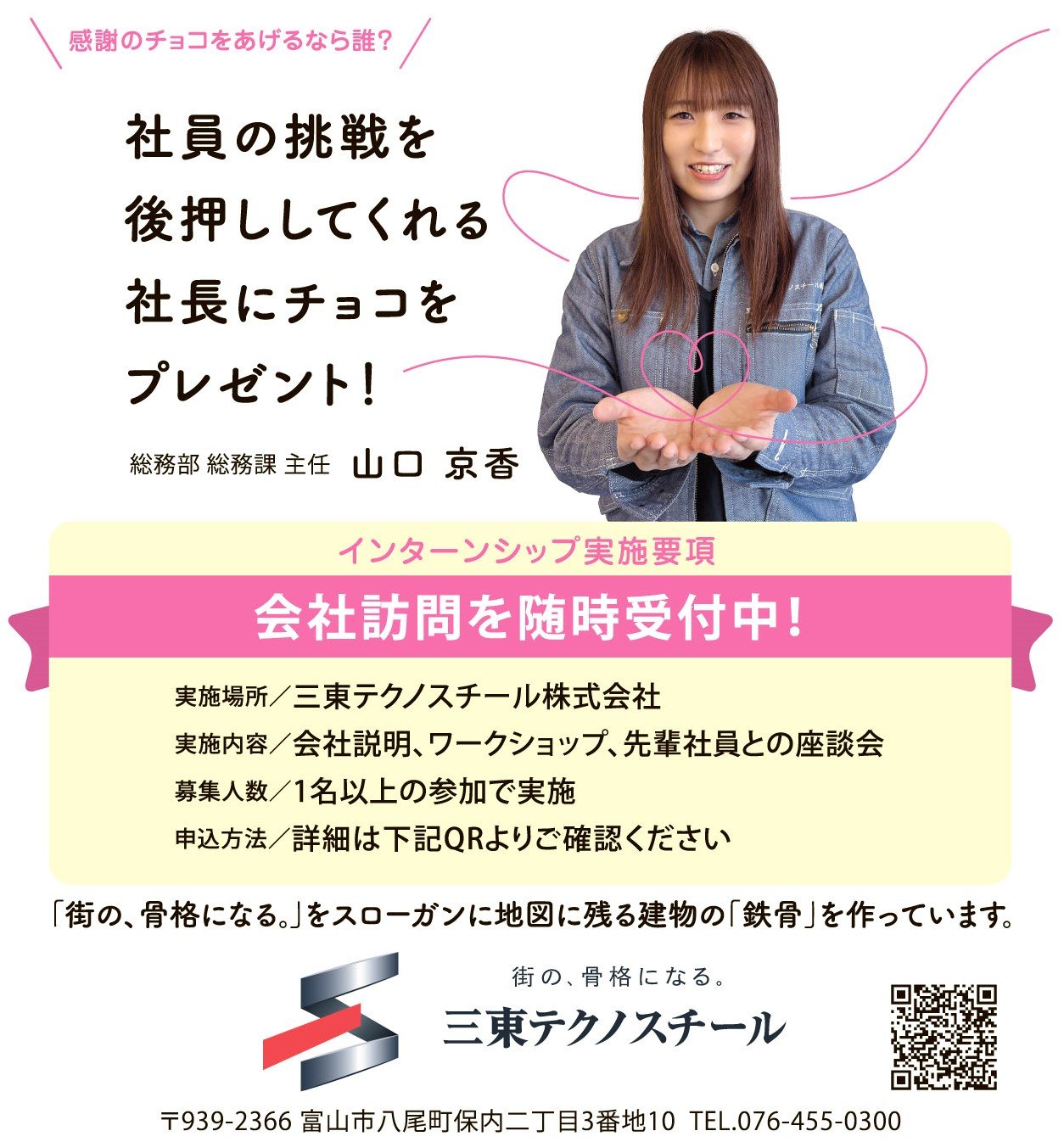 大学3年生、短大・専門1年生のみなさんを応援する交流イベントです!入社後をイメージできるキャリアシートを配布します。企業研究に役立つ内容です。ここでご紹介する富山の元気な企業たちが、あなたとの出会いを心待ちにしています!!
