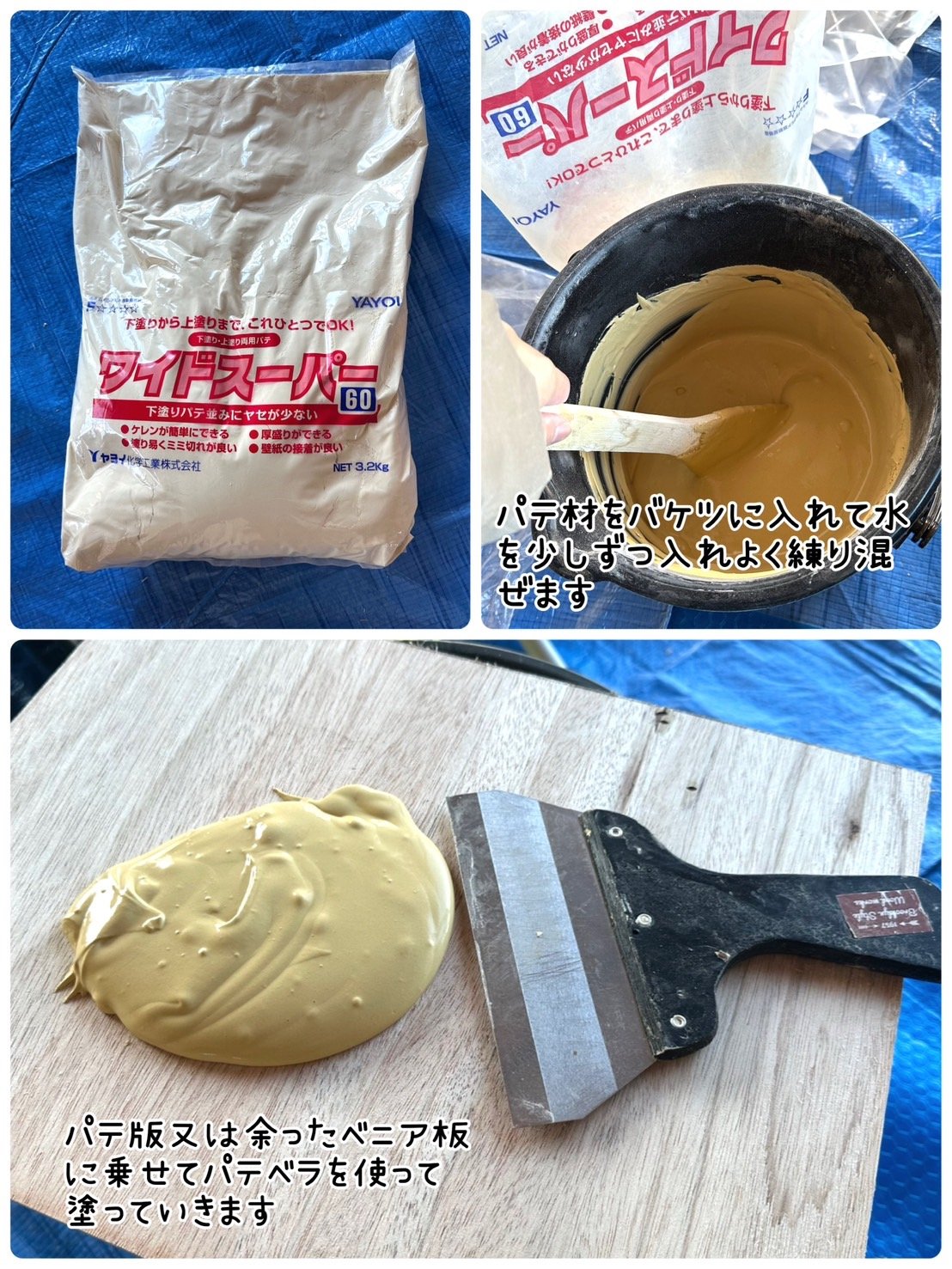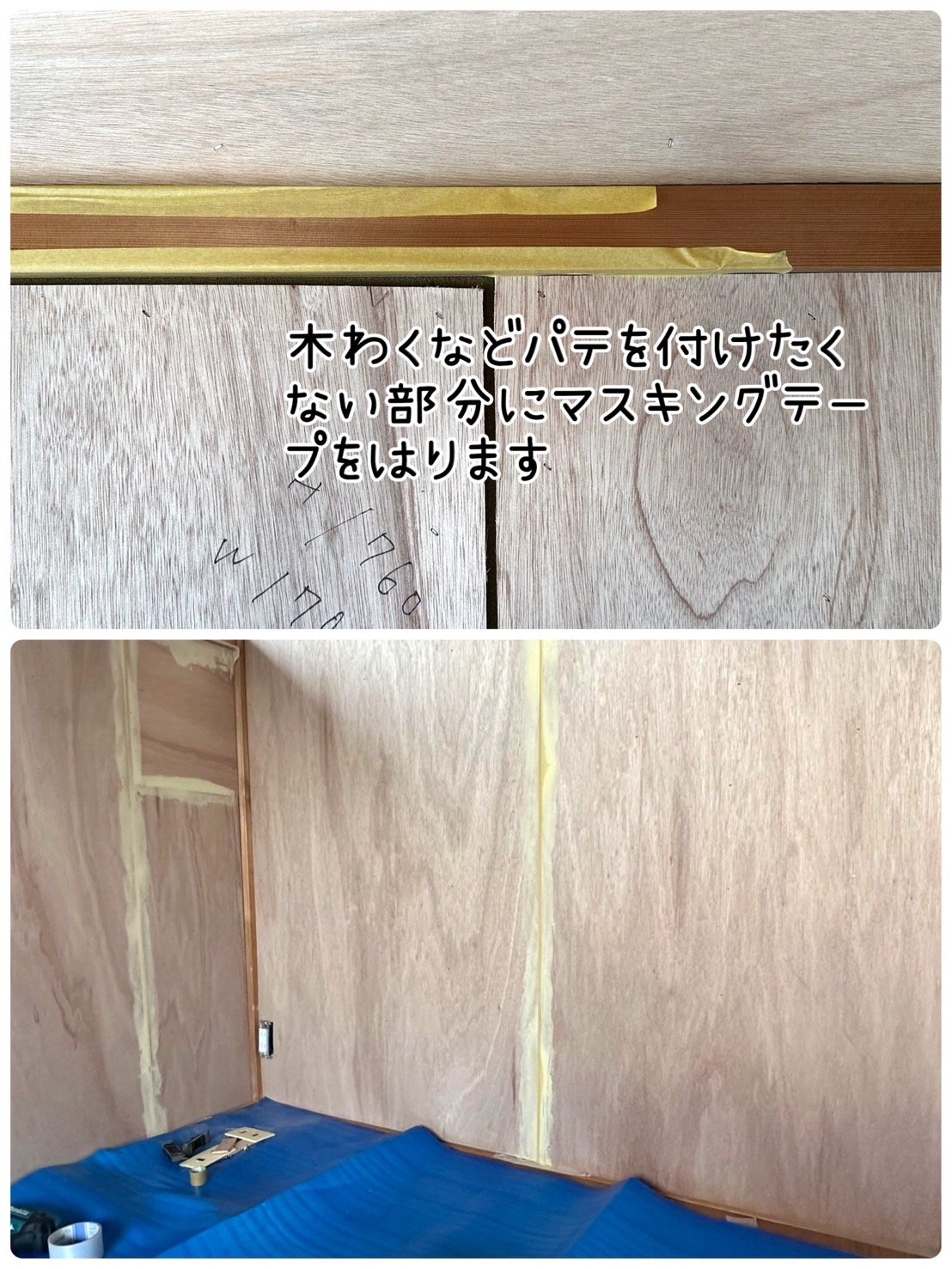 ④隙間が空いた場所やベニヤ板の間はパテをして埋めます。