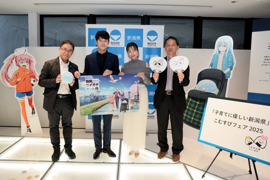 新潟県は首都圏の子育て世代に「子育てに優しい新潟県」の認知拡大を図るため、アニメ作品「転生したらスライムだった件」とのコラボレーションを行っています。コラボレーションタイトルを「転居するなら“子育てに優しい!”ニイガタだった件」と題し、1月28日(火)~2月2日(日)の6日間、銀座・新潟情報館「THE NIIGATA」において「子育てに優しい新潟県 こむすびフェア2025」を開催しています。