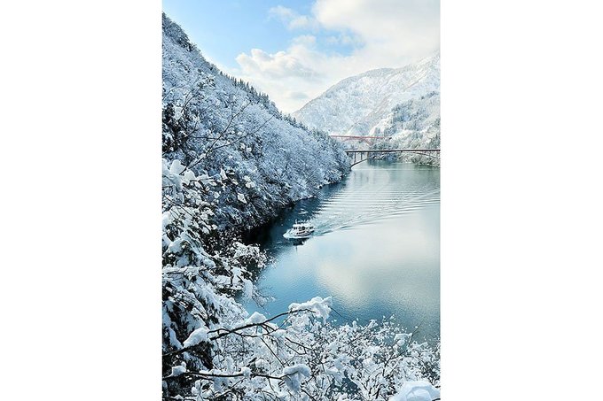 白銀の庄川峡(南砺)、水面に遊覧船の波紋 2025年1月31日 23:23 社会・話題 雪化粧した山々に囲まれた水面を進む遊覧船=庄川峡 雪の峠を越えた31日、富山県南砺市の庄川峡では、遊覧船が雪化粧した山々に囲まれた水面(みなも)に波紋を描きながら、ゆっくりと進んでいた。 午前9時ごろには、水墨画のような景色を撮影しようと約10人の写真愛好家がカメラを構えて待機。分厚い雲の間から青空がのぞくと、一斉にシャッターを切っていた。 この機能は会員限定です。 お気に入りの記事を保存し、マイページで読むことができます。 ログイン 会員登録はこちら