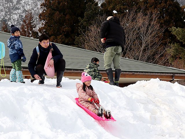 スノーフェスタは、天湖森を管理している株式会社「ほそいり」が、冬の細入地域の魅力を知ってもらおうと毎年企画。細入自治会連合会も運営に協力し、県が中山間地で進める事業の一環として実施した。