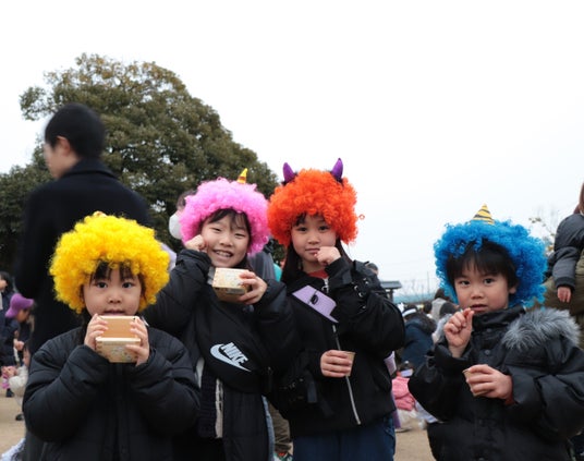 参加した子どもたちは、急な鬼の出現とその迫力に驚いていましたが、「鬼は外!福は内!」の掛け声とともに豆を力強く投げ、鬼を追い払う勇敢な姿を見せました。鬼に立ち向かう子どもたちの様子は、とても自信に満ち溢れていて、私も「鬼は外!福は内!」と子どもたちと一緒になって自然と掛け声をかけていました。