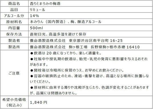 Yomeishuオンラインショップ(https://www.yomeishu-online.jp/)にて、原料と製法にこだわり、養命酒駒ヶ根工場で仕込んだ「香りとまろみの梅酒」を、2025年2月6日から新発売します。