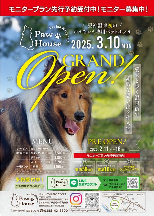 この度、ペットホテル 『Paw House』 をオープンすることになりました。