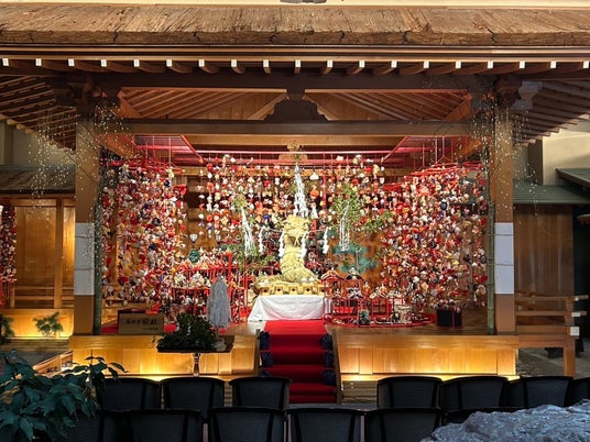 石苔亭いしだ 能舞台に鎮座するヤークー様と2千体雛飾り