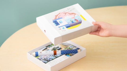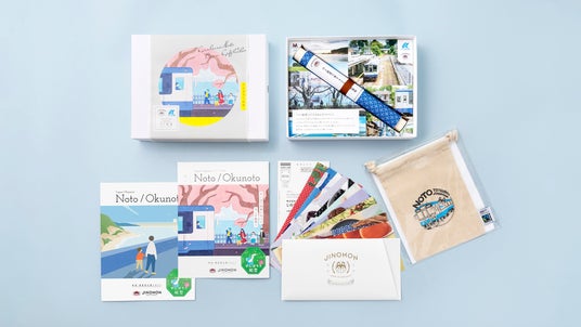 A4サイズより一回り小さな箱に収められたギフトカタログには、「旅するふるさと絵巻物(のと鉄道編)」「がんばろう能登応援マガジン」などの読み物を同梱。多彩な能登の特産品からお好きな商品を選びつつ、能登へのイメージトリップを楽しめる、ユニークな仕掛けのギフトカタログとなっています。