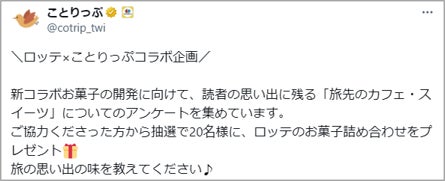 2024年4月にことりっぷ読者の方へ向けてアンケートを実施いたしました。オススメのお店と共に思い出のエピソードも頂き、600件を超えるご応募がありました。誠にありがとうございました!