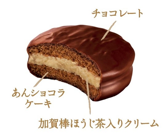◆加賀棒ほうじ茶クリームをあんショコラケーキでサンドし、ほうじ茶とあんこ、チョコをバランスよく楽しめるように仕立てました。