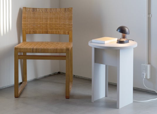 一見するとシンプルなサイドテーブルですが、脚と天板を支える構造体が延長コードを入れられるBOXになっています。