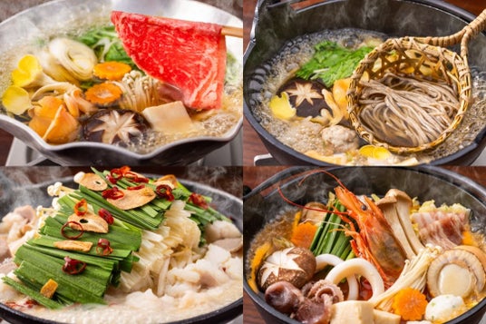 温泉クラシックスのあとは、カジュアルダイニング「村民食堂」でこの日限りのビュッフェスタイルの一部貸し切り営業を行います。乾杯には、飲泉ができるトンボの湯の源泉に炭酸とゆずやりんごを加えた、初登場の「温泉サイダー」やヤッホーブルーイングのクラフトビール、日本酒をオリジナルの升で提供。料理は冬限定の4種の鍋をビュッフェ形式で用意します。甘味には源泉で蒸した温泉花豆まんじゅうを。