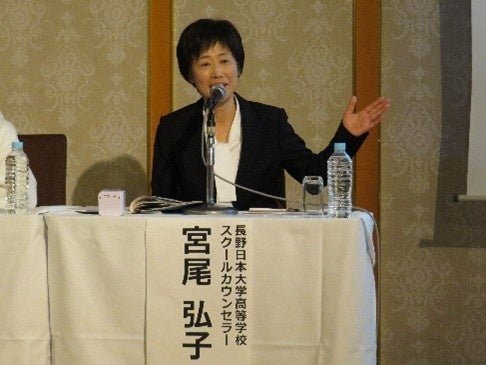 パネリスト 宮尾弘子氏(公認心理師)長野県の公立中学校の教員として働き、退職後に長野日本大学学園のスクールカウンセラーに。公認心理師の資格を有する。