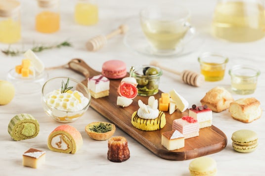 ミードとは蜂蜜酒のことで、その歴史はワインやビールよりも古く、約14000年前に現れた最古のお酒と言われています(*)。 蜂蜜の香りとほんのり甘みのある味わいが特徴のお酒ですので、ファーストドリンクに「ミードスパークリング」を提供します。ノンアルコールには、はちみつレモンスパークリングが楽しめます。その他はちみつ紅茶やアールグレイ、ハーブティーやリンゴジュースなどをフリーフローで用意するので、スイーツとセイボリーに合わせて選べます。