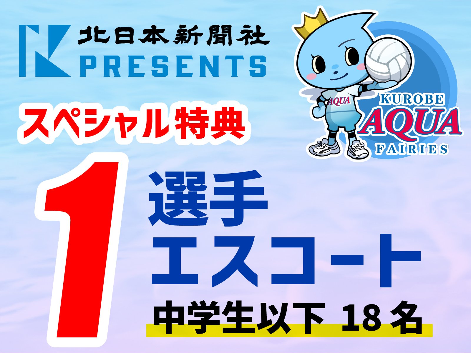 「北日本新聞社presents KUROBEアクアフェアリーズ富山ホームゲーム」が2025年3月15、16の両日、魚津市のありそドームで開かれます。北日本新聞社は15日の試合に合わせ、選手エスコートや始球式など3つの特典を用意しました。2月24日まで、参加者を募集します。