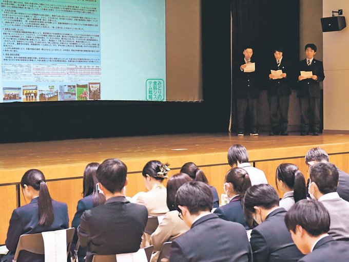 国が定めた「みどりの食料システム戦略」に基づく活動を実践する高校や大学、専門学校の計402チームが参加。地方ブロックを勝ち抜いた34チームが全国大会に進み、2チームが農林水産大臣賞、10チームが大臣官房長賞に選ばれた。