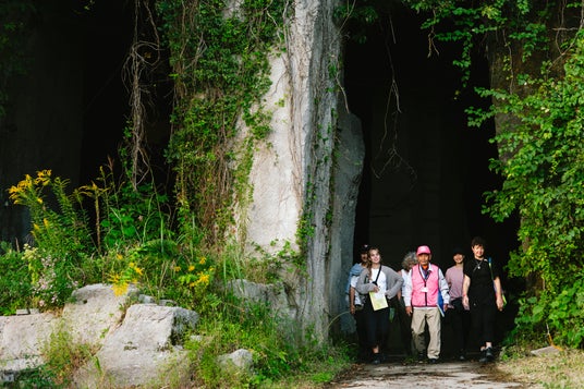 地元のガイドが滝ヶ原の石切場を案内し、その歴史や背景を詳しくご紹介します。