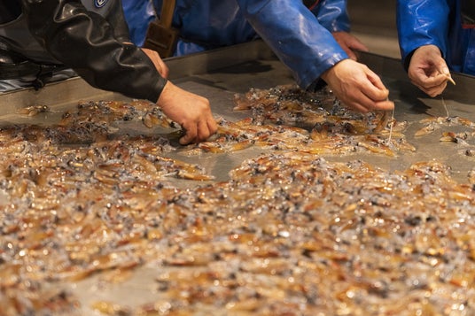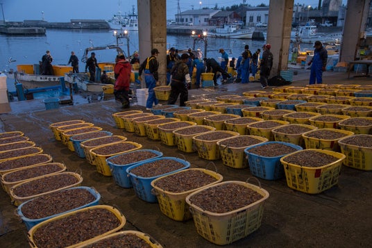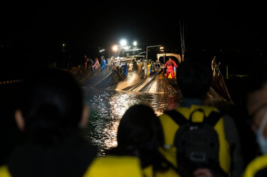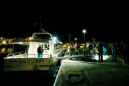 ホタルイカの神秘の光の余韻に浸りながら帰港した後、ホタルイカが滑川漁港に水揚げされる様子を見学します。