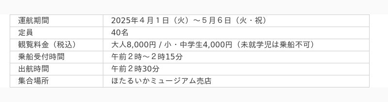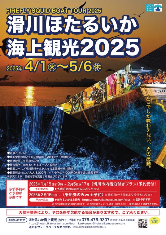 春の知らせとともにやってくる富山湾の神秘「ホタルイカ」。富山県ならではの定置網によるホタルイカ漁を観光船から見学する海上観光を今年も実施します。