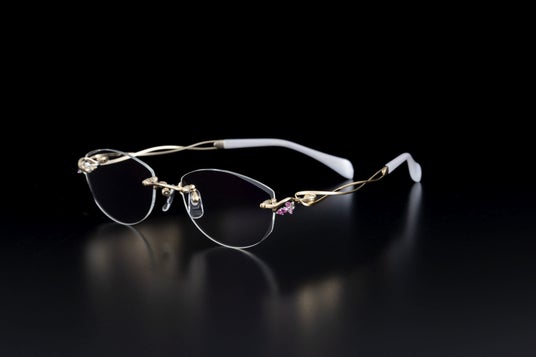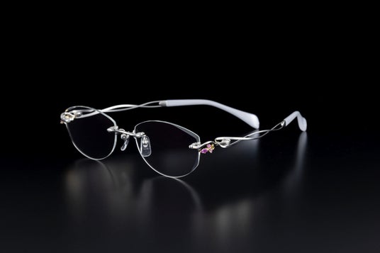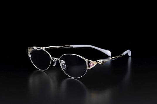 桜のつぼみをイメージしてデザインされたモデルです。色の濃度も、ラウンドとマーキスとシェイプも異なる3つのピンクサファイアが今まさに花開きそうにふっくらと丸く輝きを放ちます。ダイヤモンドを配したタイプ(GPD)はカラーレスでノーブルな印象に。ツーポイント(フチなし)タイプなので素顔に近い印象でかけていただけます。