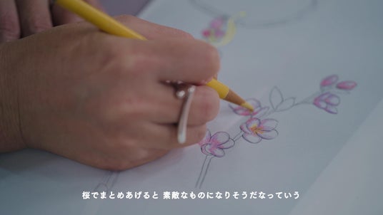 “桜”というと咲いた時だけではなく、咲く前の“つぼみ”の可愛い感じと、咲いて華やかな感じと、散る美しさやその後も緑・新緑へと続いていくので、“桜”でまとめあげると素敵なものになりそうだなという予感のもと、“桜”に決めてデザインしました。