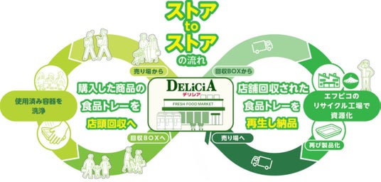 デリシアと エフピコ の両社は、 『お店が地域のエコリーダー』 となる事を目指し、地域の環境負荷軽減、リサイクル資源の有効活用を積極的に行い、持続可能な循環型社会の推進に貢献して まい ります。