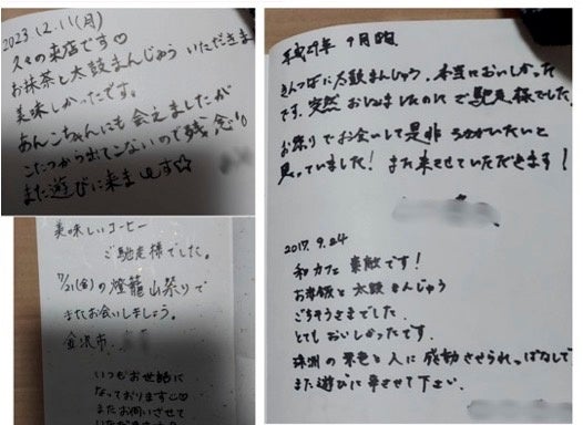 店舗の解体前に救い出した和カフェのゲストブックには、ご愛顧いただいている全国各地のお客様から心温まるメッセージが寄せられており、多間栄開堂のことをどれほど思ってくださっているかを実感いたしました。