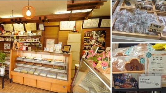 ▲左:店舗、右:道の駅(有名女優の和菓子体験の写真も活用)