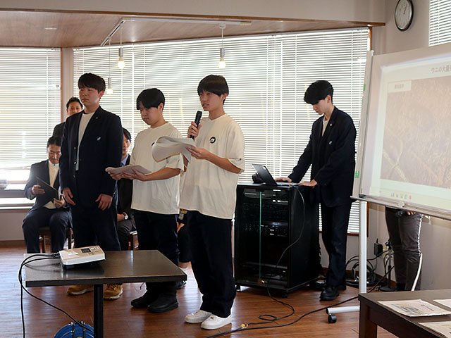 お披露目会には約50人が参加。生徒やゴールドウイン、氷見まちづくりの担当者らが取り組みを説明し、試食会が行われた。3年の上田聖夜さんは「念願の商品化。いろんな方にお披露目できてうれしい」と話した。