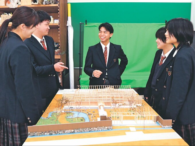 建築工学科では2022年度から課題研究として歴史的建築物の模型を製作している。24年度の3年生は昨年5月末に市教育委員会から図面の提供を受けて取り組みを開始した。