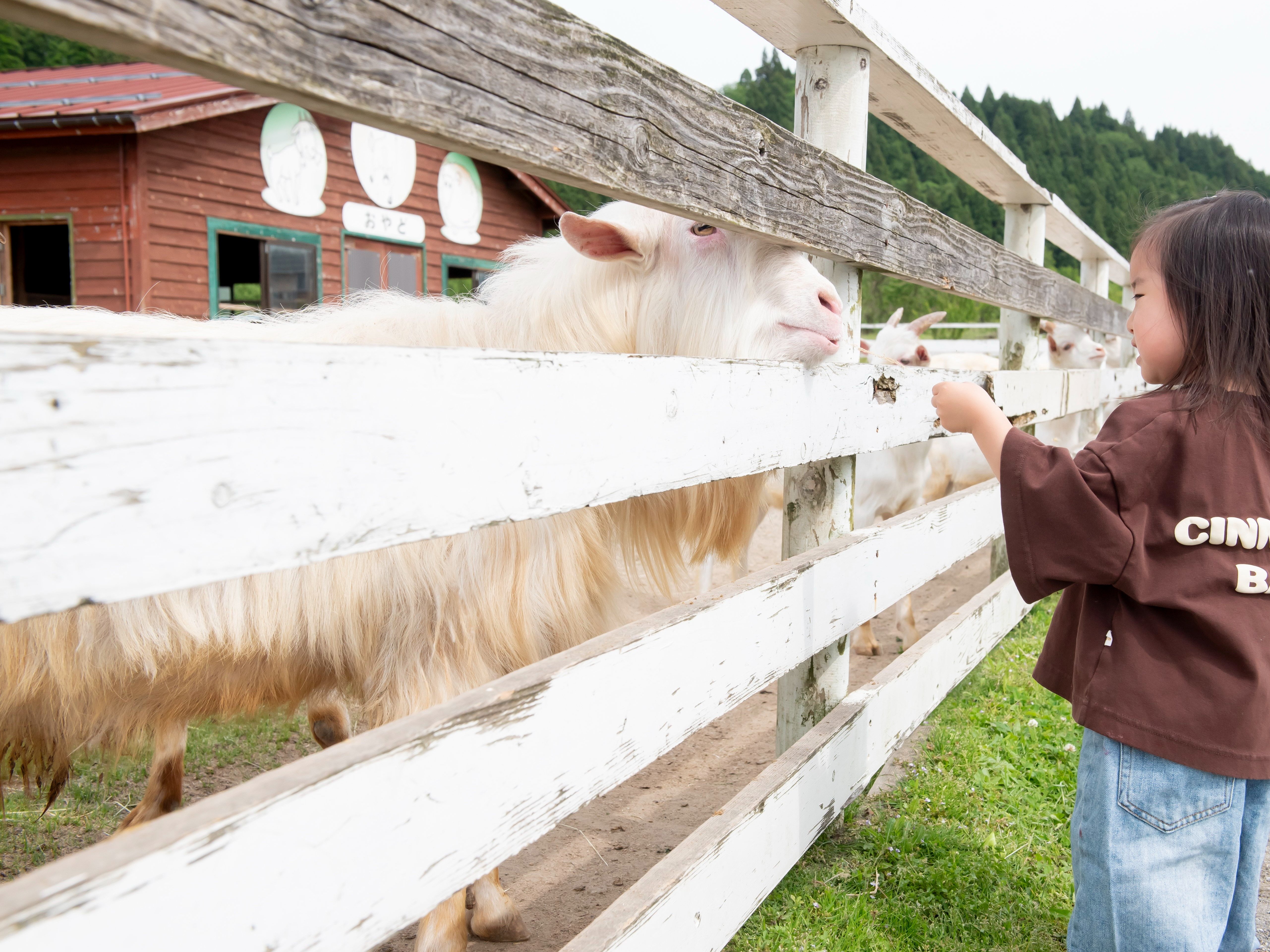 立山連峰のふもとにあるドライブイン。ふれあい牧場にはヤギやヒツジがおり、愛くるしい姿に癒やされる。餌(1袋200円)は施設内で販売する。運が良ければ近年人気のヤギの赤ちゃんが見られるかも。春から初夏にかけては「いちご狩り」も楽しめる。