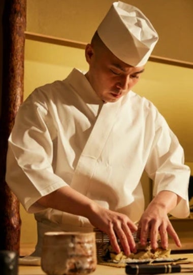 橋場俊治(はしば・しゅんじ)服部栄養専門学校を首席で卒業後、日本最高峰の鮨店のひとつ「鮨さいとう」の齋藤孝司氏の右腕として長年務め、2020年「鮨しゅんじ」として独立。市場だけでなく全国の生産者から直接仕入れ、素材に向き合い、そこに込められた想いを鮨に込める。「革新してこそ伝統は続く」という信念のもと、素材を活かす新しい発想を取り入れた現代の江戸前鮨で頂点を目指す。2025年新湊に鮨オーベルジュを開業予定。