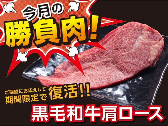 黒毛和牛大判肩ロースが復活!今月の勝負肉はインパクト大の目玉商品をご紹介するプレミアムな逸品となっています。