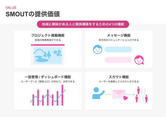 「SMOUT」(スマウト)は移住に興味のある人や地域とつながりたい人と、地域の人とをマッチングするWebサービスです。