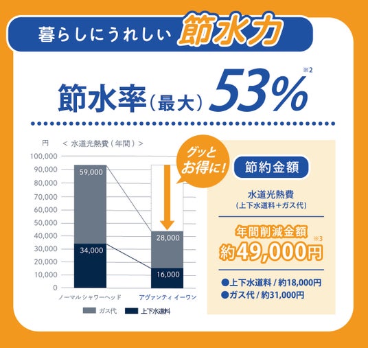 年間約49,000円削減!(※3)~節水効果は「シャワー水流」がキーポイント!~
