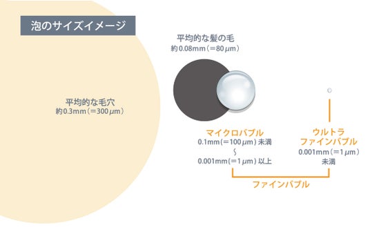 ファインバブルとは、直径0.1mm(=100μm)未満の泡のこと