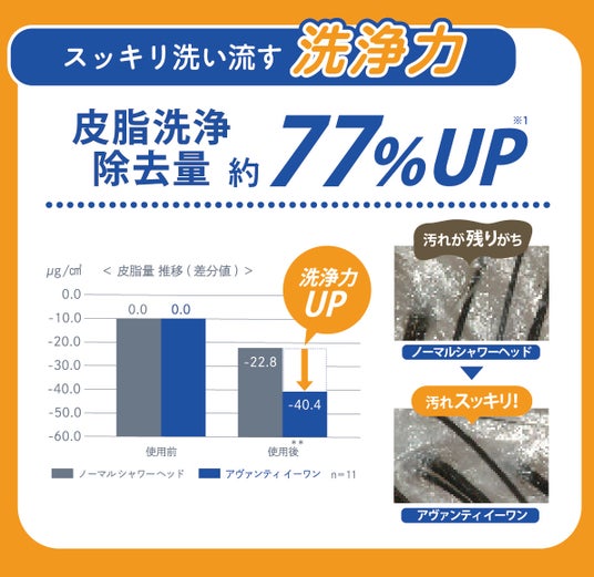 3.ファインバブルの確かな洗浄力:皮脂除去量 約77%UP!(※1)