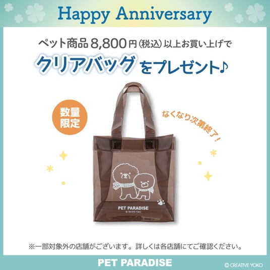 ペットパラダイス : ペットパラダイス商品を8,800円(税込)以上お買い上げの方に「クリアバッグ」をプレゼントします。