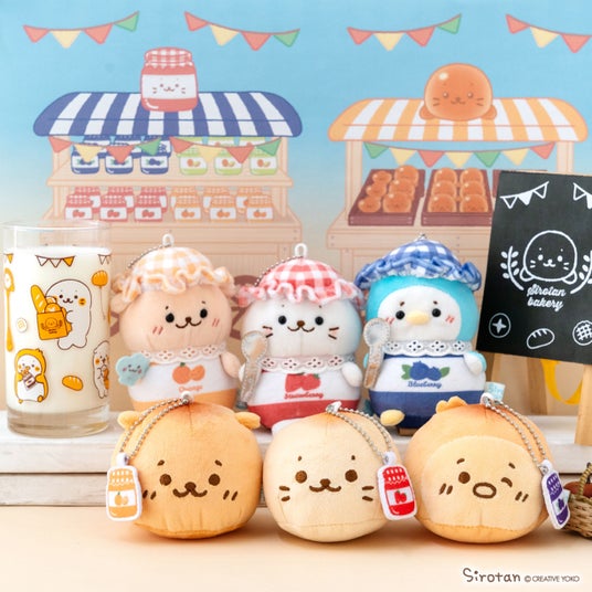 しろたんパンマルシェシリーズしろたんグラス380円(税込) しろたんジャムキーホルダー1,980円(税込) しろたんパン型キーホルダー各1,500円(税込)