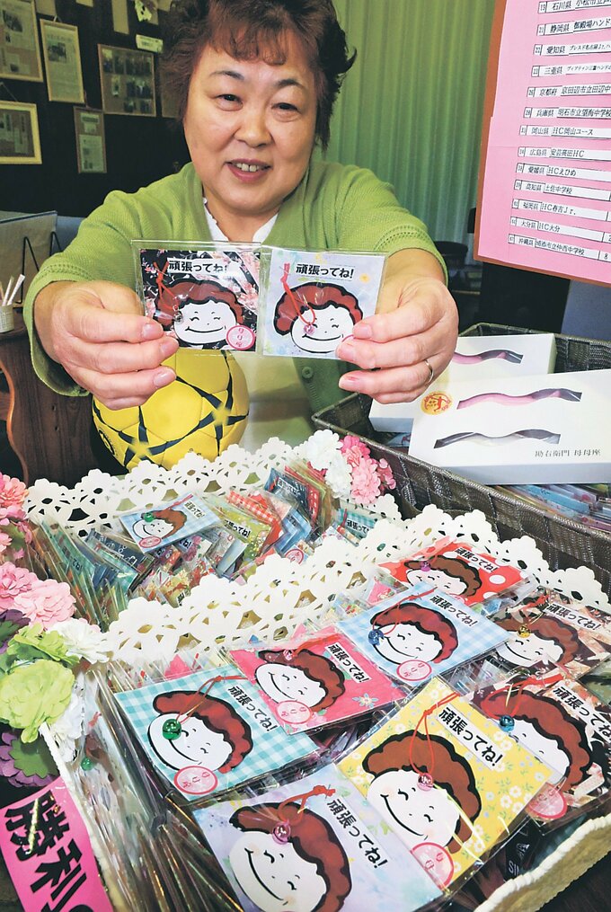 富山県氷見市で2年ぶりに開かれる春の全国中学生ハンドボール選手権大会(春中ハンド)を盛り上げようと、同市中央町の土産店「勘右衛門母母座(かかざ)」の店主、川嶋裕美子さん(64)が全国から訪れる選手たちへの応援の思いを込めた鈴の飾りを作った。25~29日の大会期間中、メイン会場の市ふれあいスポーツセンター物販ブースで350個限定でプレゼントする。