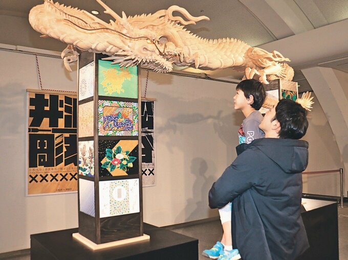 井波彫刻(南砺市)と九谷焼(小松市)の職人の技を結集した作品で、高さは台座を含めて2・5メートル、幅3メートル。