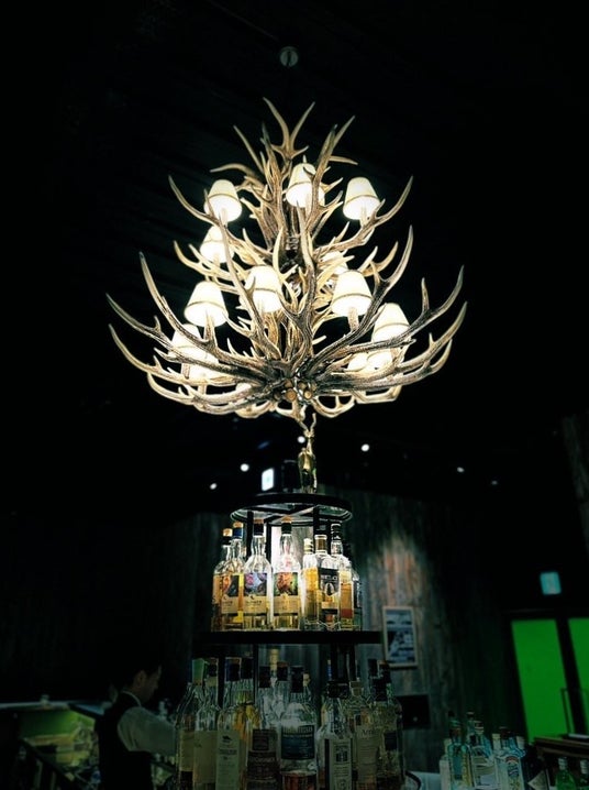 店内は、日常の喧騒を忘れさせる幻想的な空間が広がります。中央には円形のバーカウンターが配され、天井の高さを生かした山小屋風のシャンデリアが印象的。さらに、金沢駅港口のターミナルを一望できる3.8mの大窓が開放感を演出します。幻想的なライティングが施されたカウンター席、ゆったり寛げるソファー席、完全個室も完備し、シーンに応じた多彩な楽しみ方が可能です。