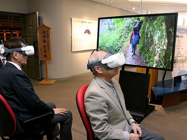 VR映像は昨年3月に公開した愛本刎橋(はねばし)に続く第2弾。入館料は300円で、中学生以下無料。VR体験に追加料金は必要ない。