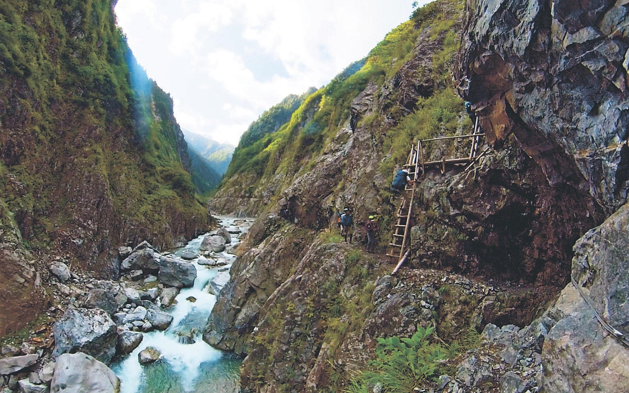 下ノ廊下は、黒部峡谷の欅(けやき)平(だいら)から黒部ダムまでの約30キロの登山道。秋の約1カ月間しか通行できず、これまで転倒・転落事故も発生している。同館は立山黒部ジオパーク協会の協力を得て、実際の映像を用いてVRを作った。