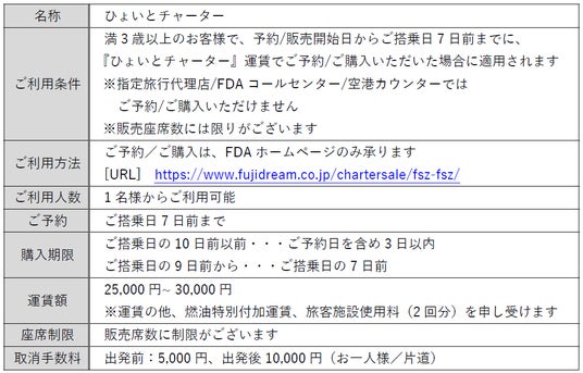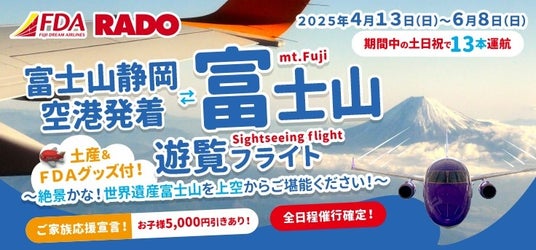 株式会社フジドリームエアラインズ(略称:FDA、本社:静岡県静岡市、代表取締役社長:楠瀬 俊一)は、『富士山静岡空港発着』の富士山遊覧チャーターフライトを個人向けにも販売いたします。