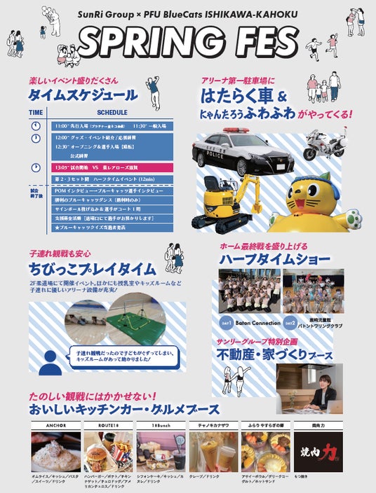 アリーナ駐車場にはたらく車やにゃんたろうふわふわ、グルメブースなど家族で楽しめるイベント盛りだくさん!