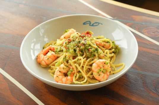 ドライトマトと大ぶりなエビの相性が抜群のパスタ。